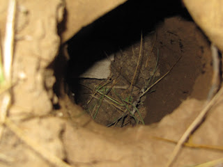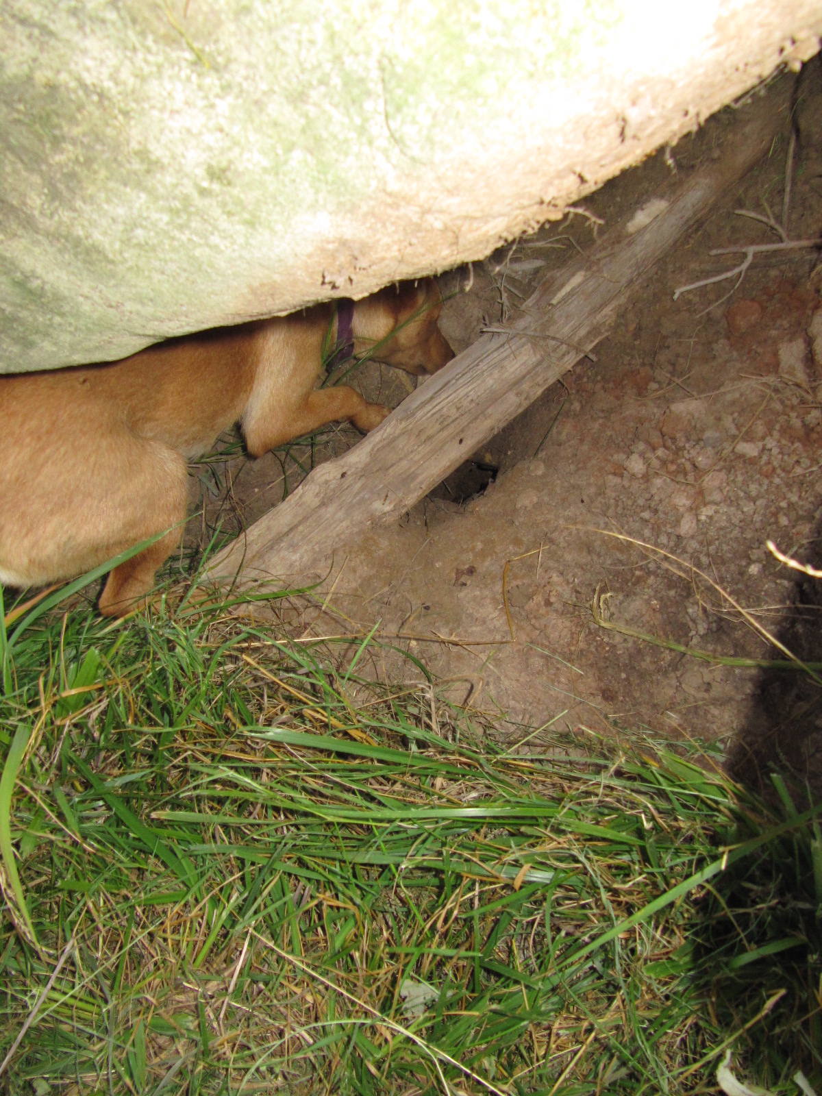Here is the rather large hole and tunnel under the rock.