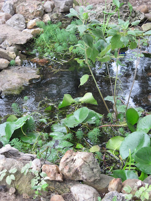 Beginning to see Dad's rocks again.  This garden was built for him mostly from his rock collection.  We have added Mount Ida crystals and others finds to make it a family water garden.