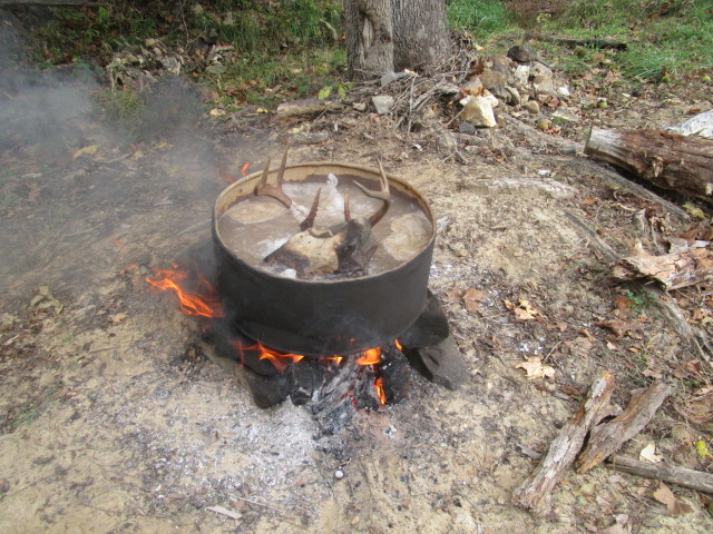 First you have to remove all the meat and I mean ALL THE MEAT. Hubby offered me brain soup for supper but I declined. When the meat is removed, peroxide is applied to bleach the skull. After drying, the entire skull with antlers will be mounted on wood for display.
