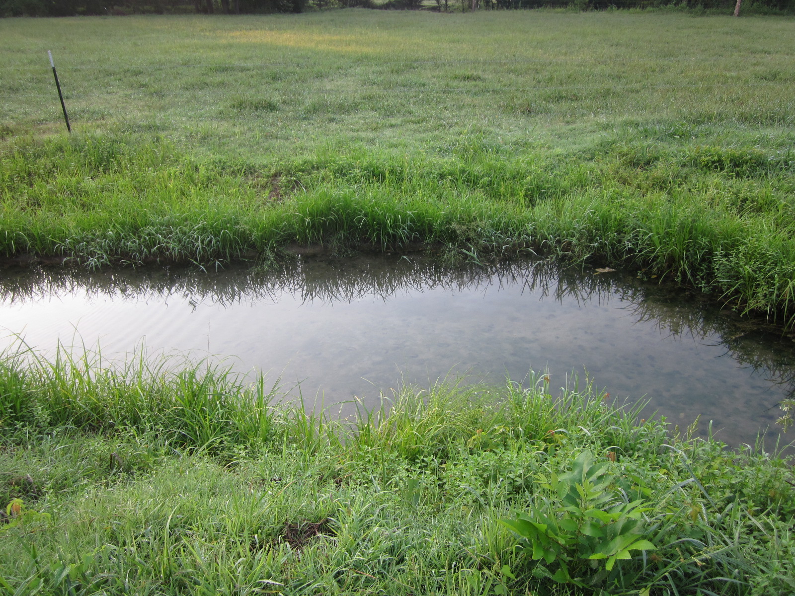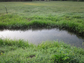 This pond is pet friendly. At each corner there are solid rock stairs where pets and people can walk right to the water's edge.