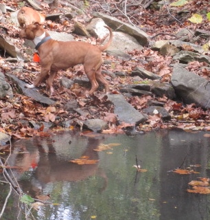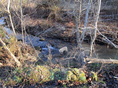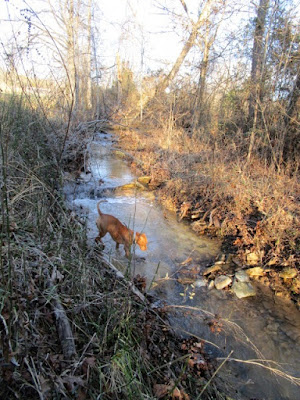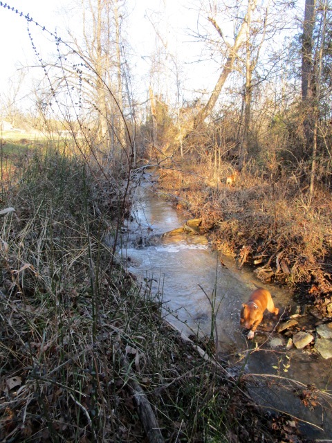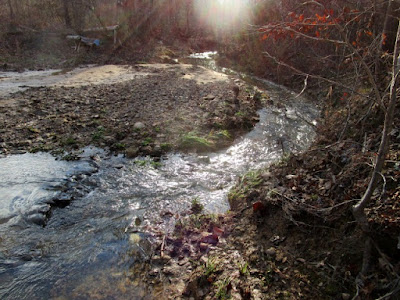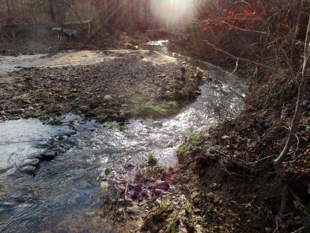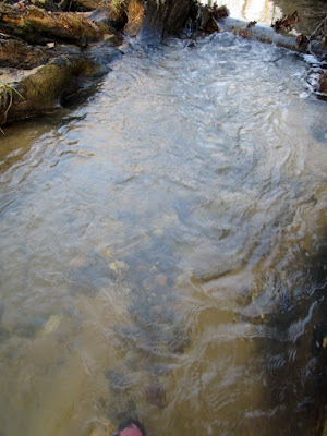 Every time I go out I see more jobs.  This was a rather deep spot reflecting the light but what I saw was the wood that needed to be cleared and the possibility of a grand son swimming hole come spring.