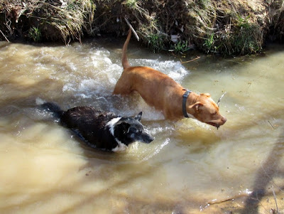 Later this day Bonnie captured another armadillo.  She shook it so hard it was separated from it's shell.  Good dogs!  Bonnie two, armadillos Zero.  Things are going as they should At The Farm.