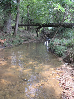 We headed home. The pack leader (me) knew some secrets the dogs didn't know. These "dry" creeks carry the run off from rain and wet weather springs but are empty when it gets really dry. We're not REALLY dry... yet.