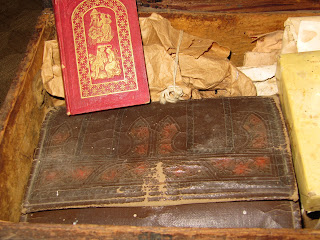 Far away, close to the chimney, I saw something tucked between the ceiling timbers...it was this box. It was wet from the recent rains. We opened it, saw papers but did not disturb them. We placed the box to dry so the papers would not be destroyed.
