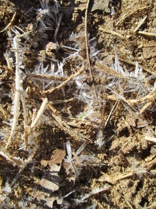 I was showing Den these pictures and he begins to argue that it is rabbit frost. He said the old timers called it rabbit frost because it told when it was safe to eat wild rabbits. I told him my parents and grandparents and every one I knew in the "old timer" category called it hoarfrost.