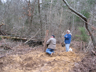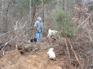 Today was much better. Den had been building fence on the west side and had asked me yesterday to come see. He knew better than asking me to come help. Today Marcy and I headed up the hill, behind the new pond, to see the wondrous work of THE MAN!