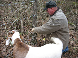 Guess who would not leave me alone? Princess, that wonderful goat, that belongs to my sister. I think okay, I've had my shower so I no longer smell like a billy goat. I do not know if she was attracted to wonderful Bath & Body Works lotion or if she was just glad to see me. She circled all around me, rubbing her horns on me, bleating and just having a good time. I escaped into the house and she was at the door, at the window, bleating to me! I grabbed the bb gun and thought that might persuade her to go home...NO! Princess wanted me for some reason. By this time I am regretting my shower. My husband saves me with the paint ball gun. Princess is now brown, yellow, orange and white. Looks quite artsy and seems to know it.