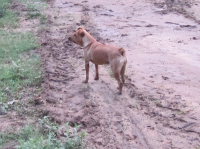 Hubby was in the field and noticed Ki and Junior jumping forward and jumping back, barking like crazy. Since they have been thinning the muskrats, Hubby didn't think much about it. He thought they had cornered a ground hog or some other creature.