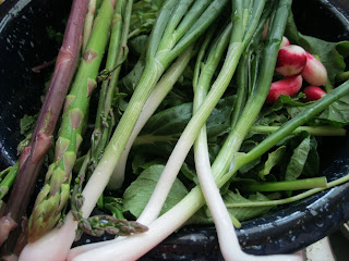 Asparagus, radishes, greens and onions, oh, my!