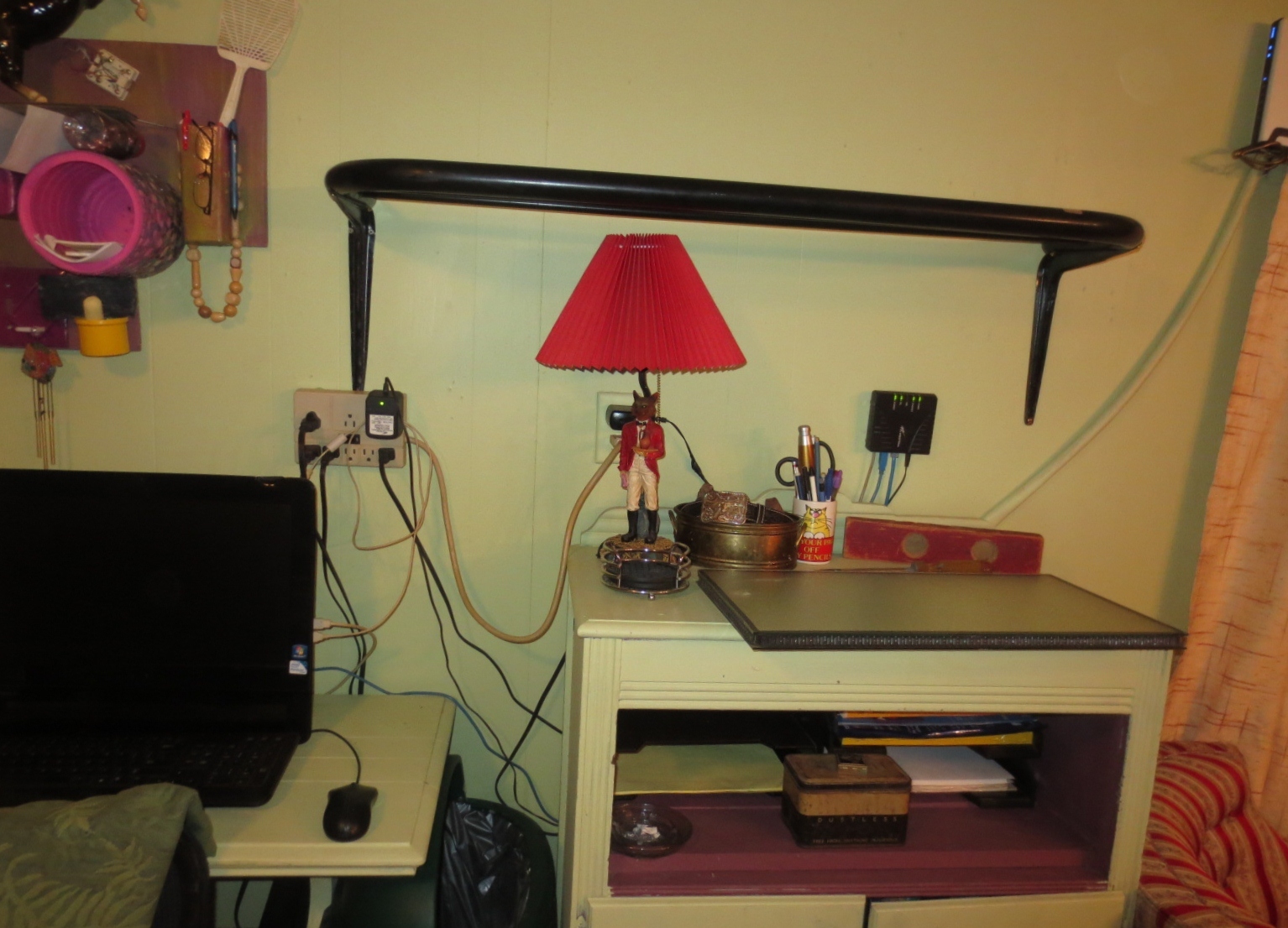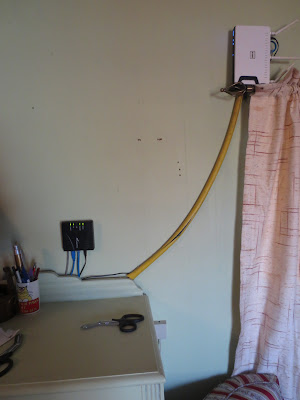 I just like the way that sounds. I am not DIY program material but I'm getting better every day. I know you are tired of me tooting my own horn but, by golly, I've done good. Here is where we were before I started today. Way too many wires and way too much junk.