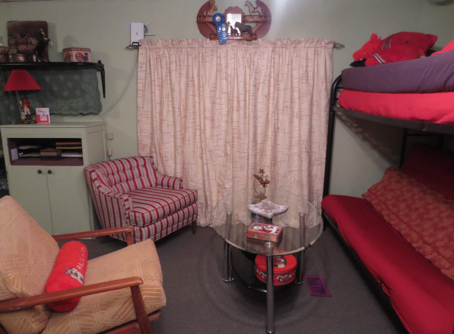 The futon/bunk finished with some Christmas decorations.