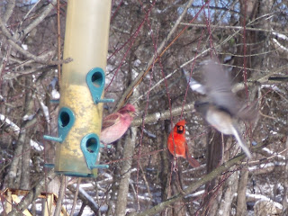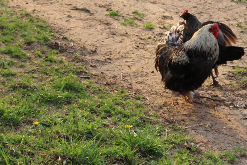 The rooster spies his love bird