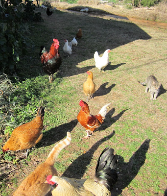 So I head back to the old barn, with more watermelon, and I have company.  No one will let me take a good picture, they all want treats so most pictures would have looked like fish eye photos.