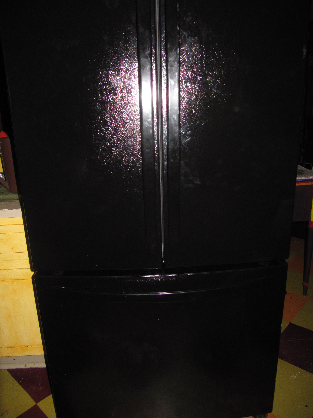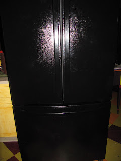 Hauled in our truck, new fridge and proud guys arrived. Took the box off and quickly discovered black gets very hot in the sun. Out of the truck, the three of us, mostly hubby, manhandled that monster to the door. Oops! We had to take the outside door off the house, not the fridge. Rolled it through the entire length of the den, which caused every thing to be moved out of place for this baby to get through (still out of place, haven't got around to putting it back yet).