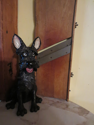 Every thing is not old. This statue by Pets with Personality stands beside the family's old kraut slicer.