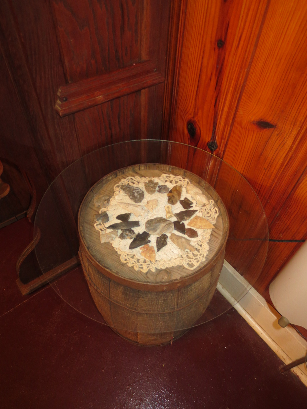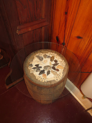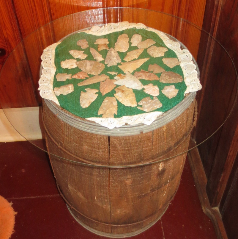 We must not forget those who first lived here. I honor them with their treasures displayed under glass on top of an old wooden barrel.