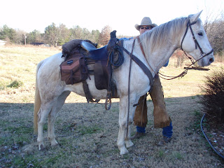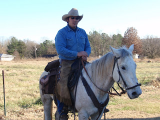 Meet Robert Wheat, son of Rick Wheat, inventor of the patented Noavel Head Stall. Robert trains horses using the Noavel. He came by to get his mail and knocked on the back door. I asked permission to take his picture so I could show you a local cowboy. He said he wasn't worth a freckle on a real cowboy's behind. However, he does always seem to be training one horse or another. Word gets around.