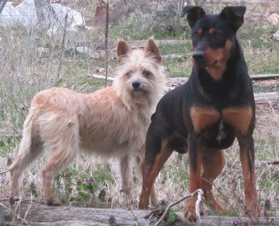 I've never had the herds completely blended until today.  Squiggs (not twelve pounds) cut out our cattle and headed them back to their spot while Junior, Ki and Lizzy curved the strange bunch back out of our pasture.  It was simply amazing. I face an oncoming wave of half grown calves.  For a second, just a second, I doubted the power of my team.  I raised my arm and I pointed.  The dogs take our cattle one way and the strange ones are herded the other. As they hit the divide, Lil picks up the chase and takes them totally into their home pasture.