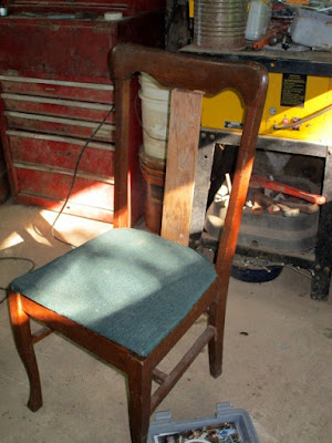 If you haven't noticed, I don't throw much away.  I certainly have been enjoying the shop since it's cleaned and organized.  Decided to have a go at a couple of chairs that needed repairs.  This was what I found inside the chair after I removed the broken seat.