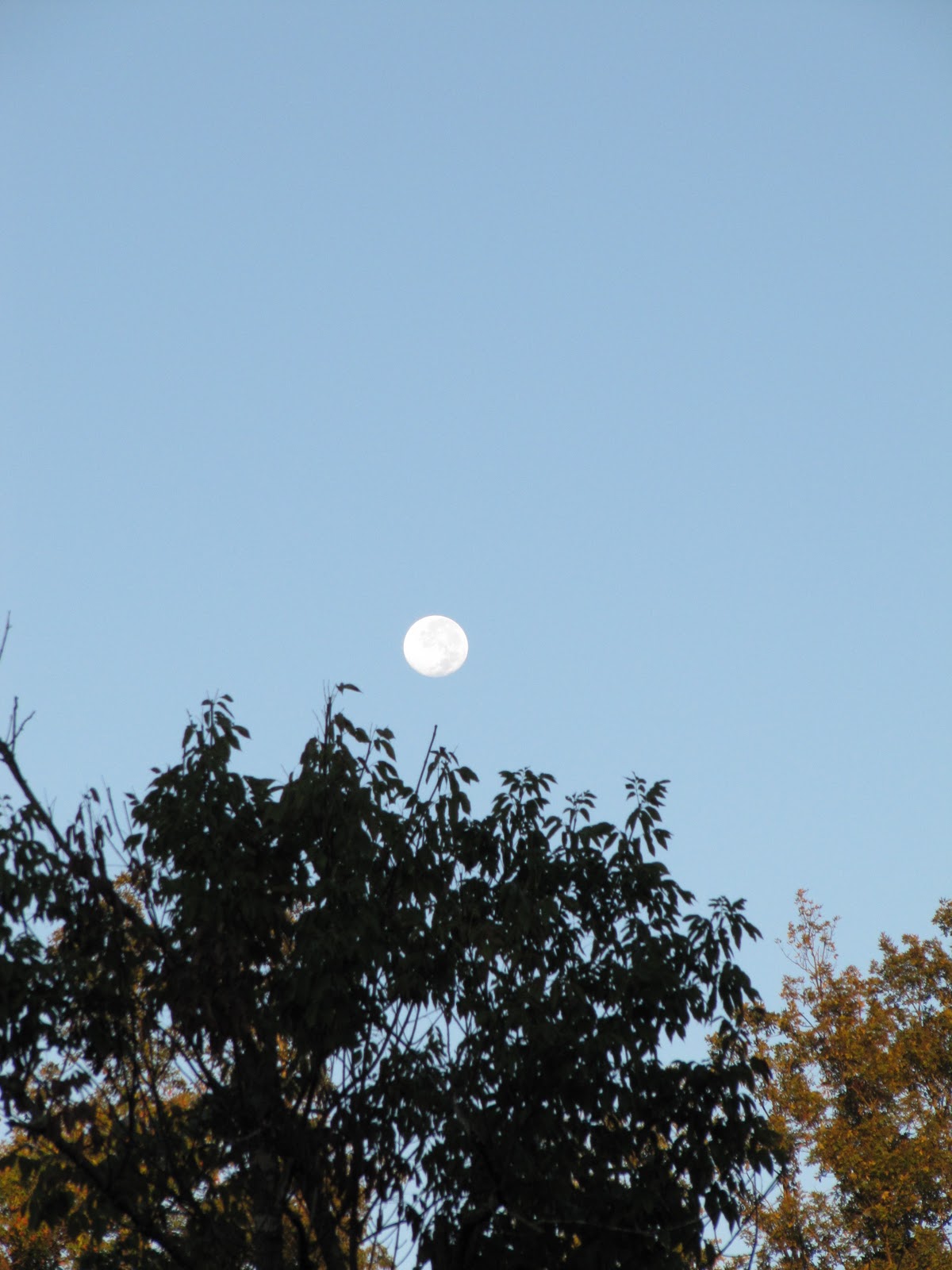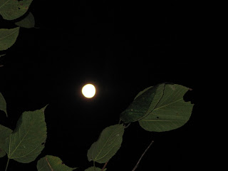 The same moon last night showed through the Mulberry tree that I used for support. I have neither the proper camera, tripod or intelligence to take a fantastic moon picture but this night the joy was in the trying, not the end result.