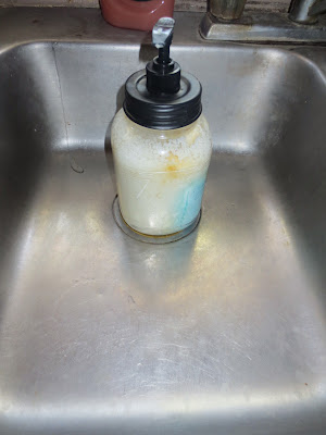I have an empty sink which is a rarity with a teenager and a man in the house. This handy dandy item from Marcy helps you use those tiny slivers of hand soap. Place in a jar, add water, instant liquid soap. No molds to shape the soap, no recipes, no cooking in a big black kettle over an open fire. Just soap and water with a dispenser. Easy Peasy!