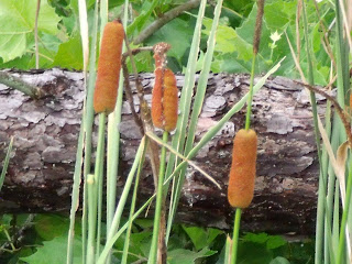 The texture of pine logs and cattails