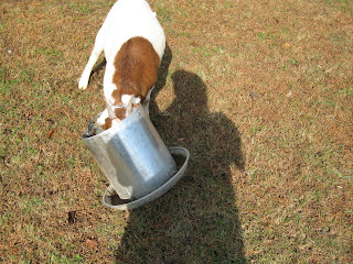 So I happily worked with water and rocks and played with dogs which is kinda a perfect day in my book. When I first constructed this water fall I had expand-a-foamed the rocks on top of the liner. It held awhile but now it was loose. I had the great idea I didn't need new foam but hoped to hold the liner with rocks. Plugged the pump back in and declared it complete until the next time.