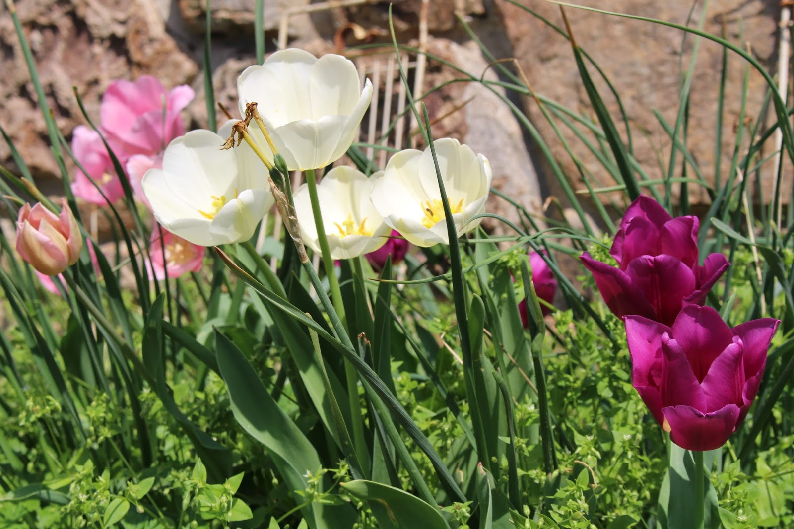 The tulips and other spring bulbs struggle through the vetch and other wild ground covers screaming to me of all the work I have to do.