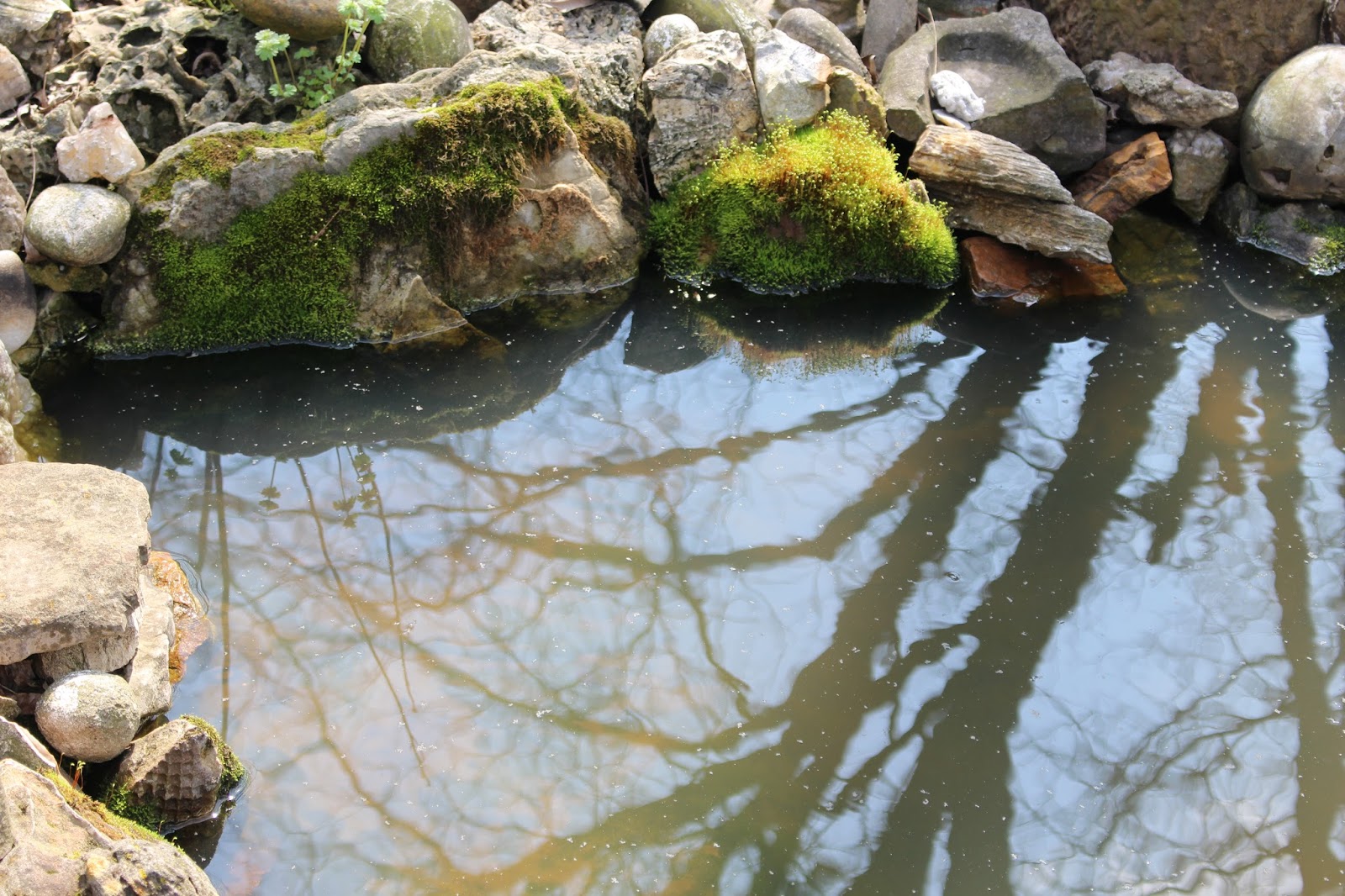 Spring has arrived at the water garden. Irises are coming to life and the money plants are growing.