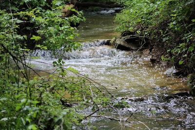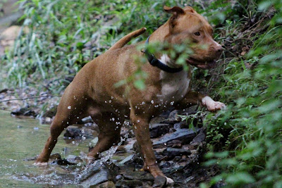It was warm for a run up the hill. I'm a softie so old lady Lil and Lizzy got to ride in the Gator seat with me. They'd run along with us and were so hot. We stopped at the creek. My shoes were quickly discarded.