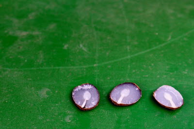 You basically eat the fruit and spit out the seeds.  Wild animals love them!  There are many great recipes for breads, cakes, and spirits.  The seeds are the famous winter forecasting seeds.  You cut the seeds and the shape you discover forecasts your winter.  Carolina Nana can show you how.  Her persimmon seeds predict a cold winter.  I'm hoping my forecast is different.