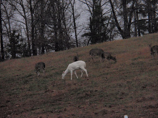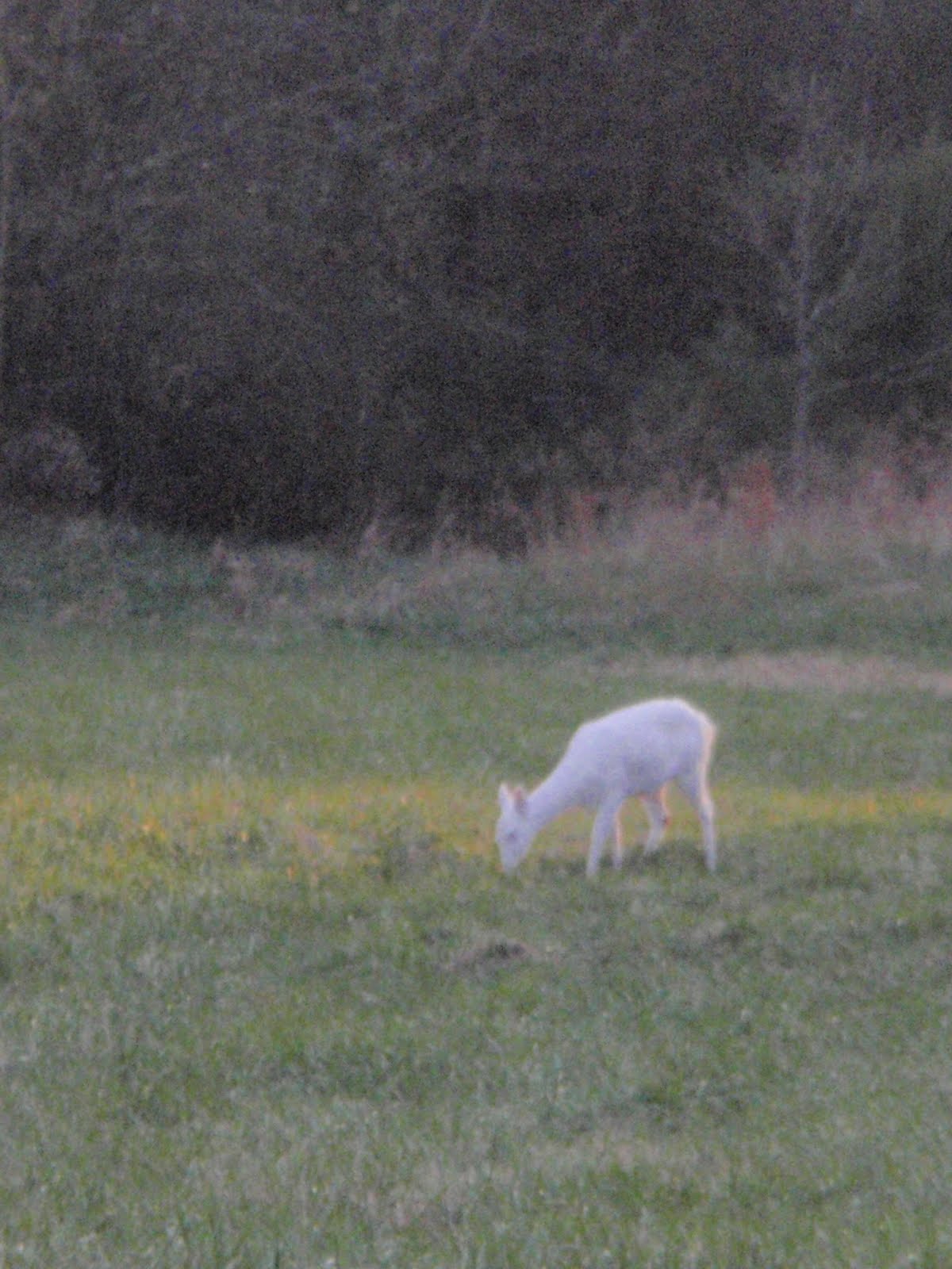 It is deer season and I hope the neighbors keep her protected. Game and Fish says she needs to be killed because she introduces weaker genes to the deer pool. Aunty Mary use to say whites would make the herd weak. I could not be the one to make this shot!