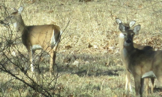 Mom sees something. I am telling the dogs to stay, shush but the deer have seen or heard one of us.
