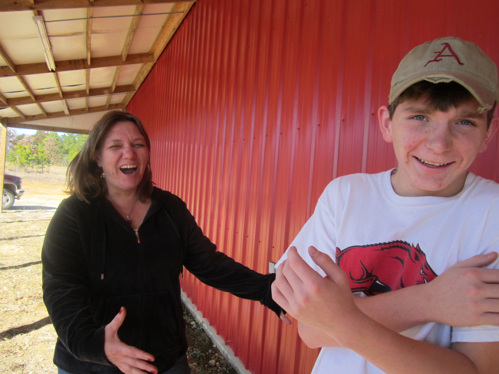 with a pair, acting crazy and laughing.